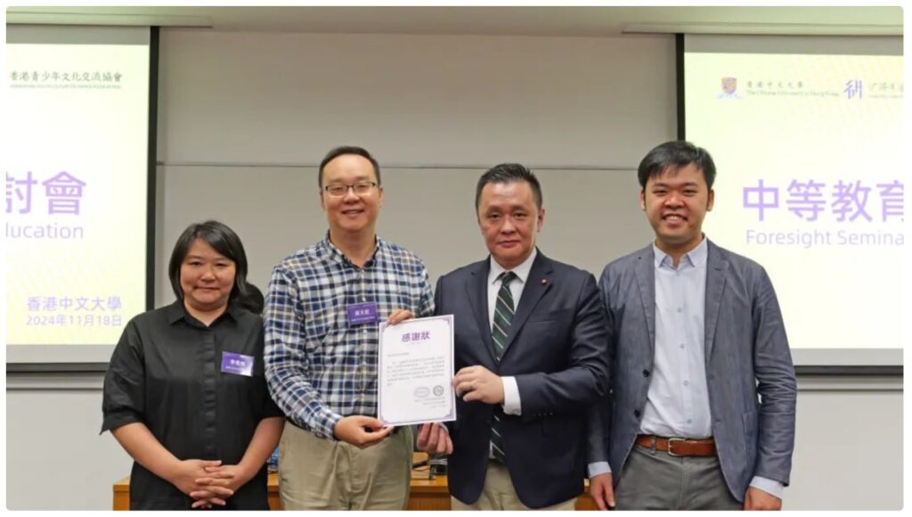 11月18日,由香港中文大学沪港发展联合研究所和香港青少年文化交流协会联合主办的「中等教育前瞻研讨会」在香港中文大学郑裕彤楼顺利举行。此次活动汇聚了来自香港与内地的教育专家、校长及行业领袖,共同探讨中等教育的发展趋势及其在全球化背景下的新挑战与机遇。