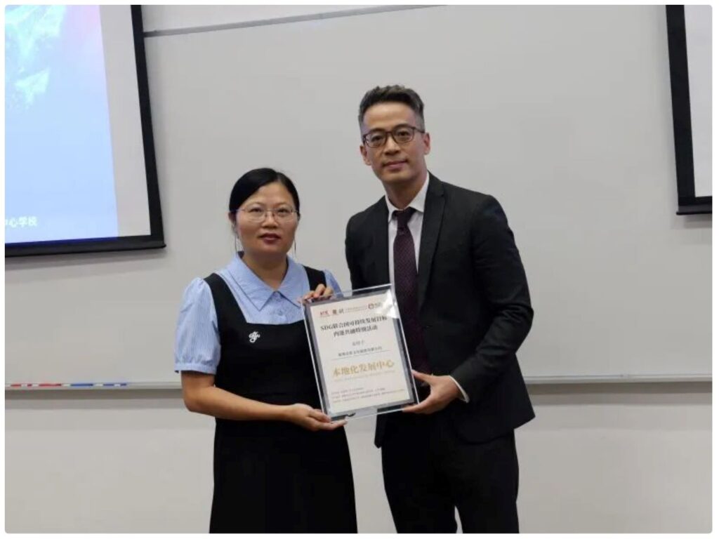 活动接近尾声时,香港青少年文化交流协会主席安东老师分别为泸州天立春雨学校、深圳市教文国际交换生服务发展中心、深圳市爱德思教育文化科技有限公司、深圳思达文旅、广东省青少年素质拓展研究会、深圳引思文化旅游有限公司、深圳市七彩魔方教育科技有限公司颁发了【SDG青少年内港共融特别活动本地化发展中心】证书。这为各单位在推动未来可持续发展与培养未来全球公民方面的合作奠定了坚实的基础。